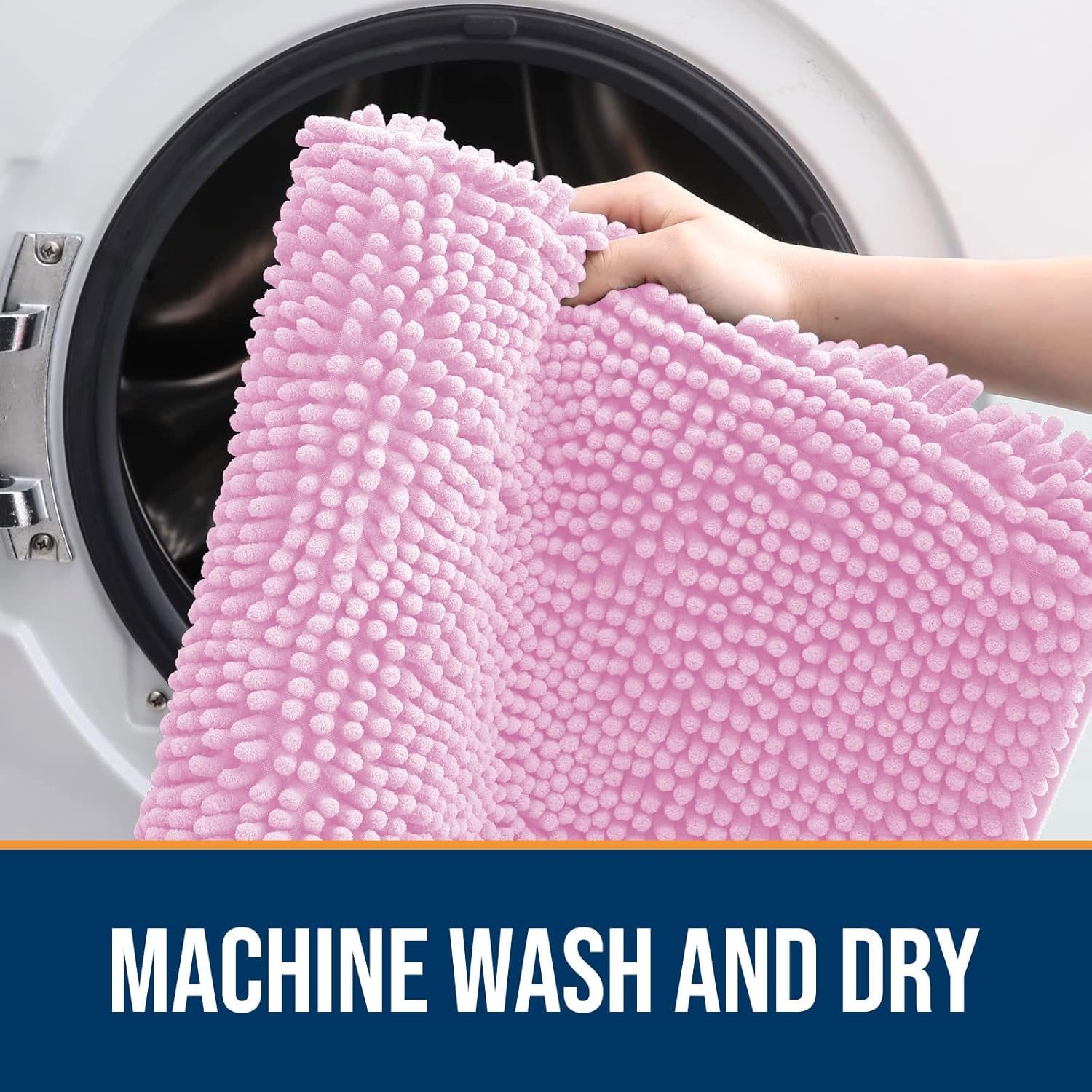 OLANLY Dog Door Mat for Muddy Paws 47x32, Absorbs Moisture and Dirt, Absorbent Non-Slip Washable Doormat, Quick Dry Chenille Mud Mat for Dogs, Entry Indoor Entryway Carpet for Inside Floor, Pink