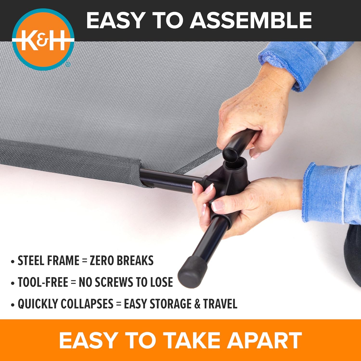 K&H Pet Products Elevated Outdoor Dog Cot Bed, Raised Cooling Bed with Washable Breathable Mesh for Large Dogs, Portable Raised Platform Pet Bed, Heavy Duty Metal Frame Hammock Bed, Jumbo, Gray