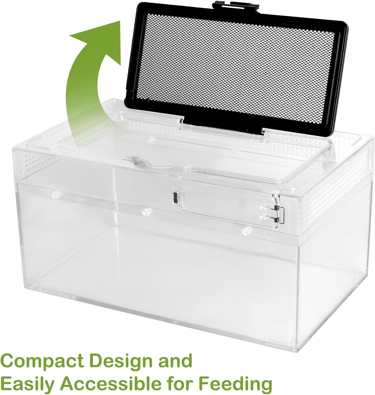 - OUTSTANDING DESIGN DETAILS: The PC terrarium adopts a one-piece design, with no need to assemble, waterproof bottom makes this tank can be used both as a desert terrarium and a rainforest tank, the feeding cover at the top, easy to feed your pet and prevent esca