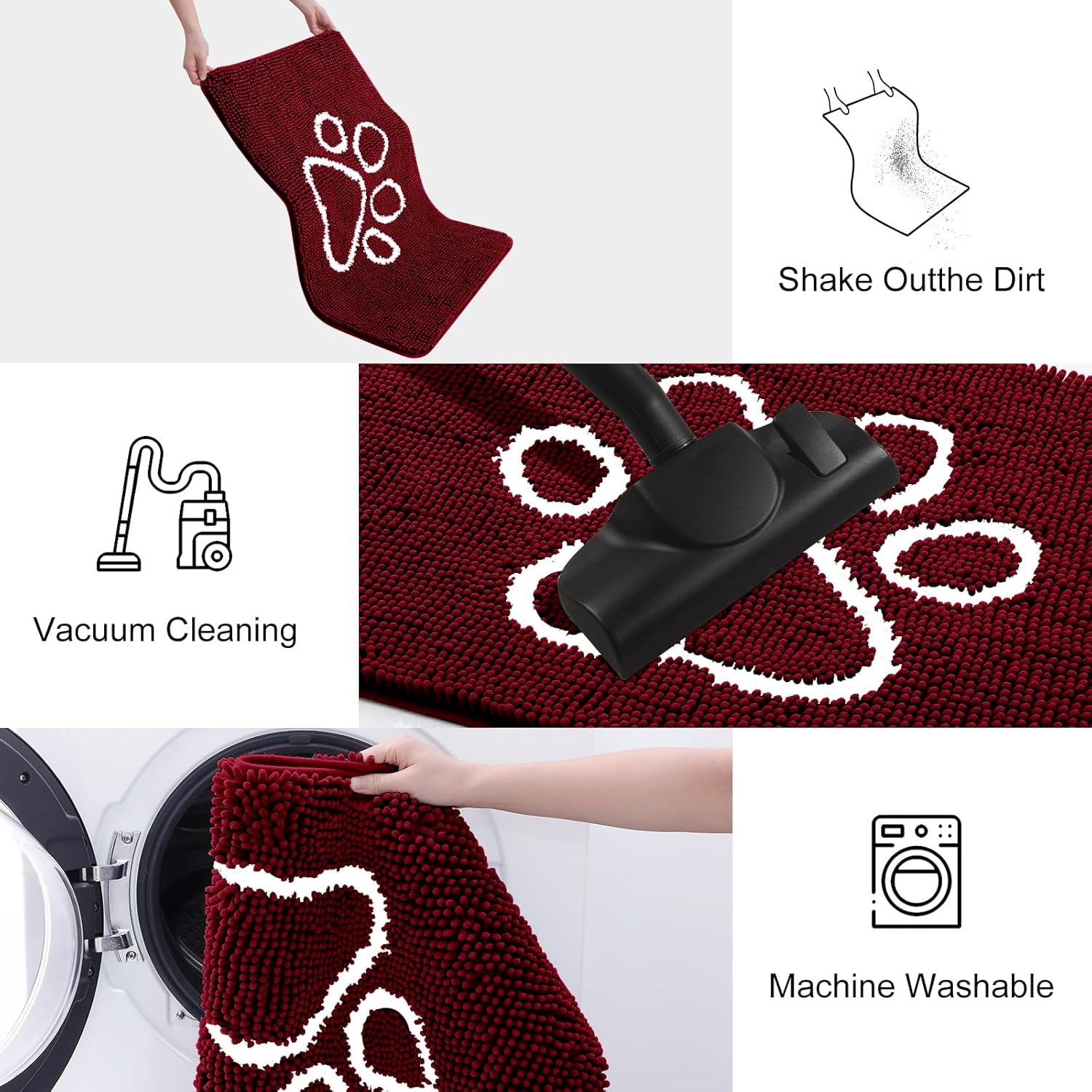Smiry Dog Door Mat for Muddy Paws, Absorbent Dirt Trapper Non Slip Quick Dry Washable Chenille Mat for Mud Dogs, Entry Rug for Indoor and Outdoor (24x16 Inches, Burgundy)