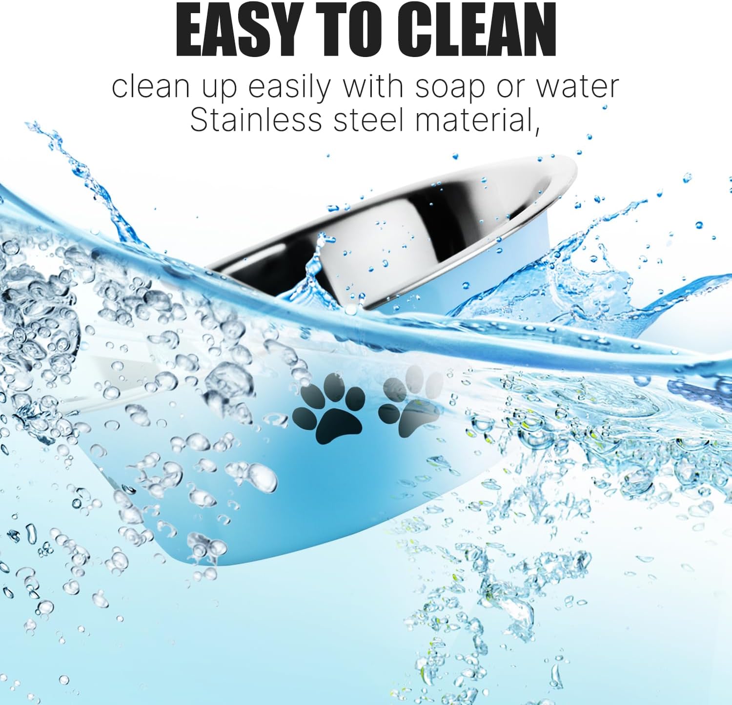- ๐๐๐-๐๐๐๐: Stainless Steel Pet Bowl with Silicone chassis - Keep Mealtime Mess-free and quiet๏ผThe cleverly designed foot mat prevents the bowl from scratching the floor, making it suitable for use on various types of flooring.