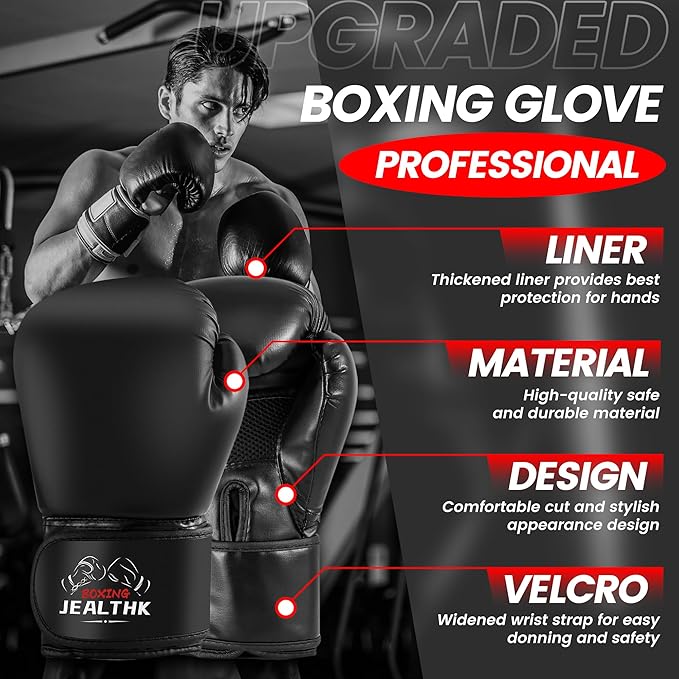 - Upgraded 12OZ Boxing Gloves:Featured with 10mm thicken high-density foam and pre-curved anatomic hand design, upgraded 12OZ Boxing Gloves create the best protection for your hands with shock absorption. reduce the chance of wrist injury。Make sure you can hit with confidence!