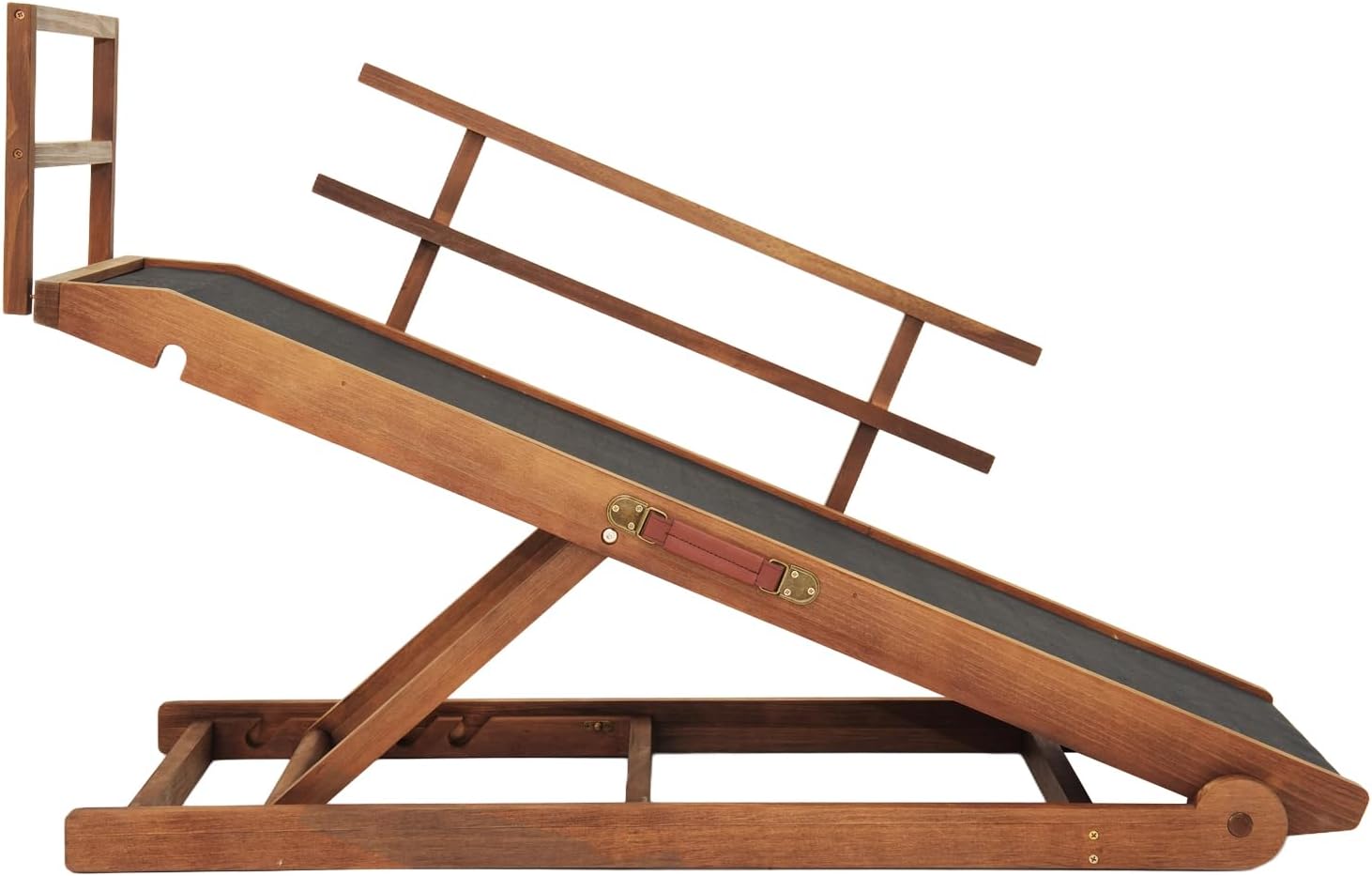 - ☀ Sturdy and Durable: Our pet ramp for dogs and cats crafted with solid wood and reinforced with stainless steel hardware, our ramp is built to support pets up to 210lbs, offering both strength and stability for their safety. If the ramp is slippery for your floorboar. You could put carpet or non slip material under the ramp.