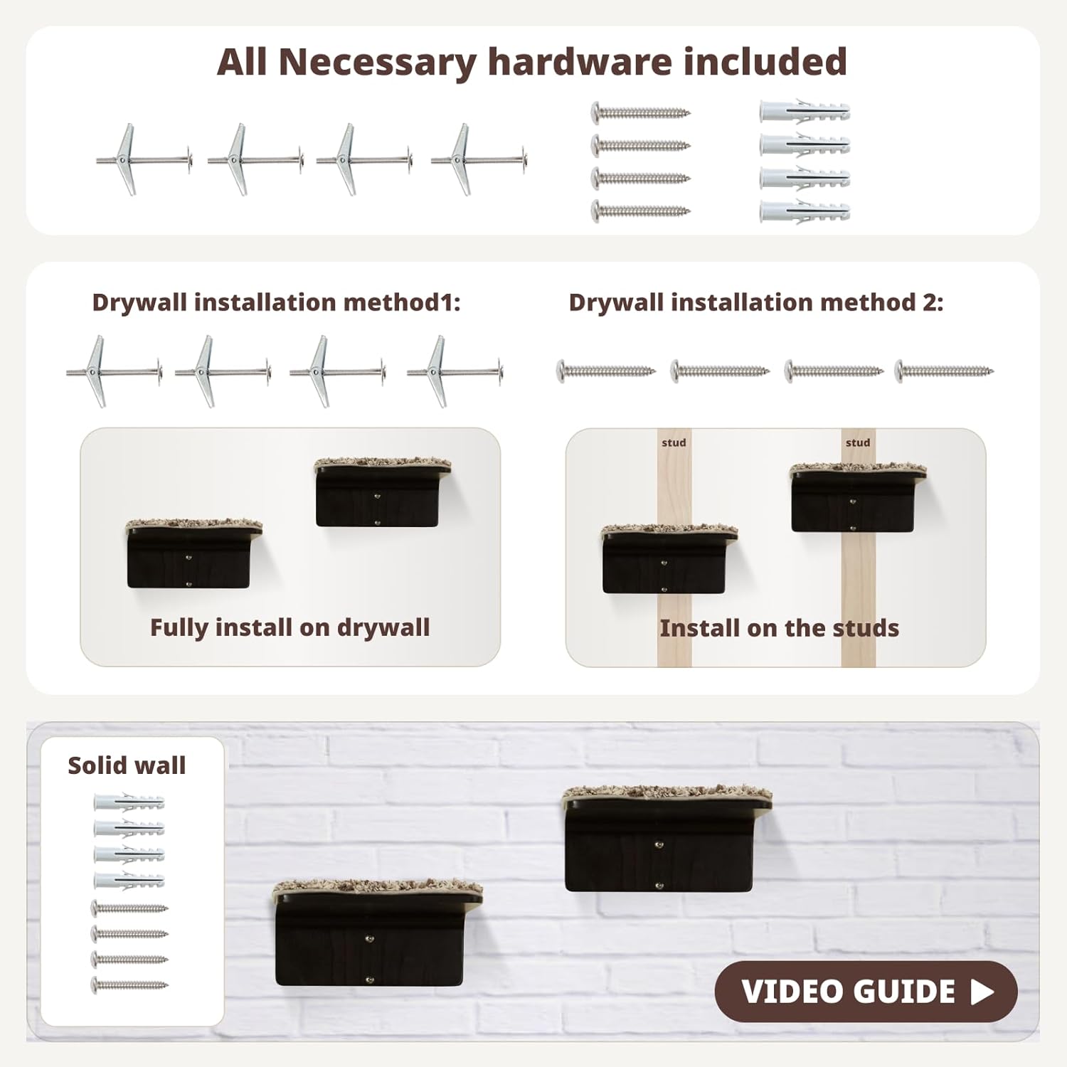 - Ideal Size - Our cat wall shelves measure 10"(L) x 10"(W) x 4"(H), perfect for indoor cats to climb and play. Treat your cat to the perfect space for fun and exercise!