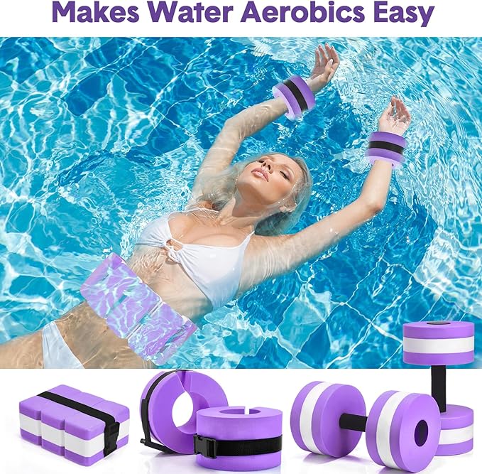 - Complete Package for Water Fitness: this water dumbbell set is a comprehensive package for your water workout regime, including 2 foam swim aquatic cuffs, 2 lightweight aquatic exercise dumbbells, and 1 swim belt, which ensures a full body workout, improving your overall fitness
