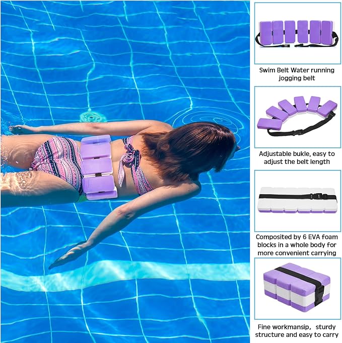 - Practical Swim Belt: the water weights equipment consists of 6 EVA foam blocks, sized at around 16.6 x 5.9 x 1.85 inches, suitable for waist sizes from about 22.8" to 42.1"; The swimming belt comes with a durable adjustable shoulder strap and buckle that can be fixed at the waist for easy adjustment; Provides you with flotation assistance while in the water, ideal for non swimmers or beginner swimmers who need support