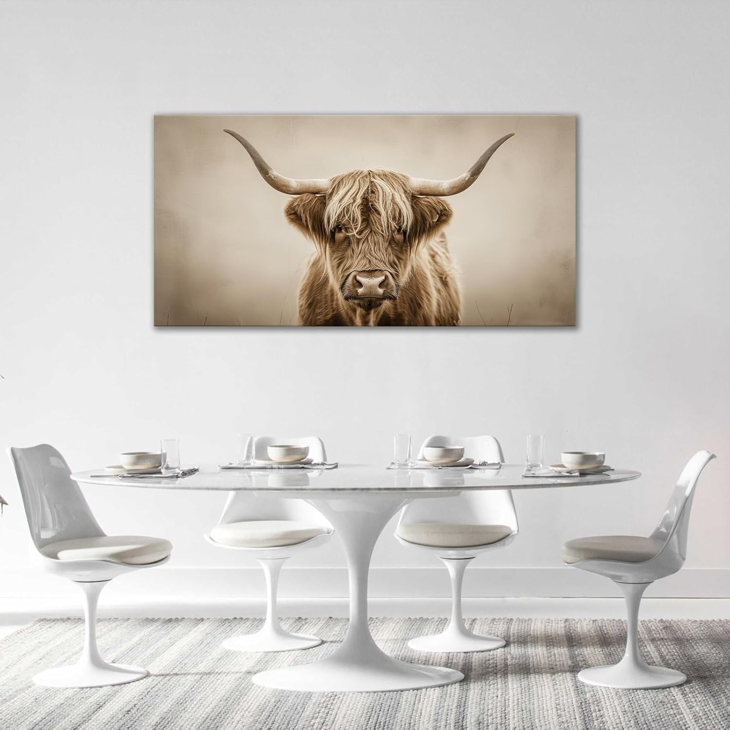 Large Highland Cow Wall Art Farmhouse Country Extra Canvas Living Room Oversize Western Cattle Wall Decor Pictures Framed Prints Animal Painting Artwork for Bedroom Dining 60"x30"