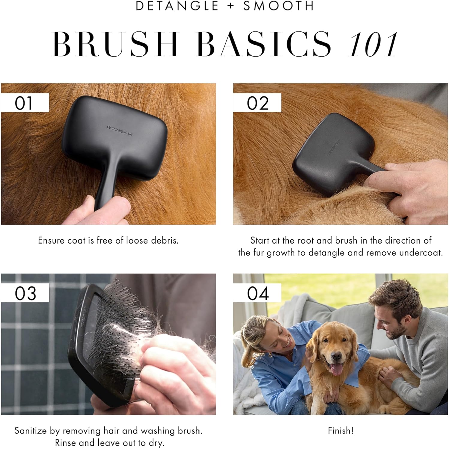 - For long-haired pets, slowly work towards the roots as the outer layers of the coat detangle to keep your pet comfortable.