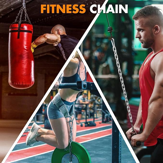 - Multi-Functionality:As a cable extension accessory for workout machine, the steel chain can be used for a variety of training programs, such as pull downs, curls, squats, hard pulls, bench presses, etc. It is suitable for use in strength racks, pulley systems, and weight lifting equipment, providing trainers with more diversified training choices. It can also be used for sandbags, locking gates or bicycles, fences and other