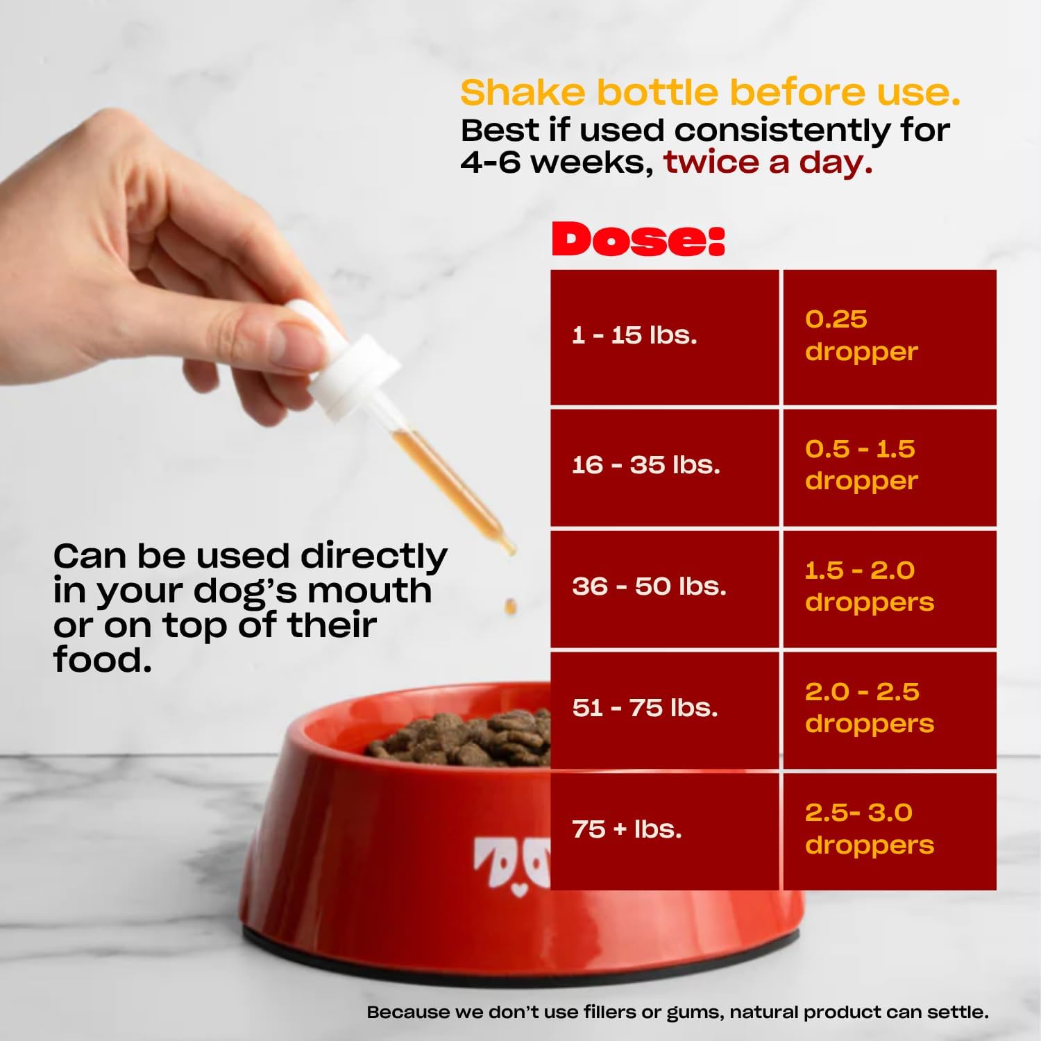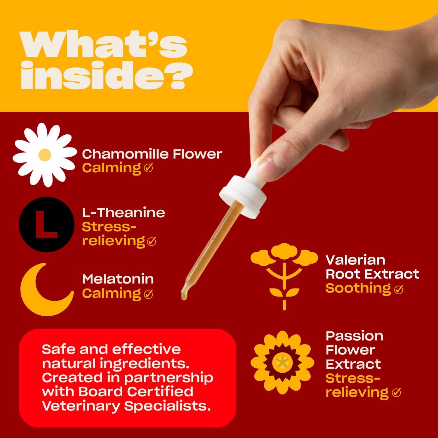 - Super Easy to Use: Pop this calming tincture directly into your dog’s mouth or drizzle it over their food. "Dog’s choice," as we like to say
