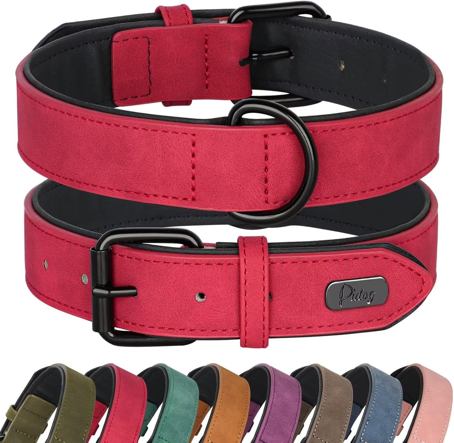 Didog Soft Padded PU Leather Dog Collar, Breathable and Adjustable Red Dog Collar for Large Dogs, Comfortable for Daily Walk,Red XL Fit Neck 17-21"(44-71 lbs)