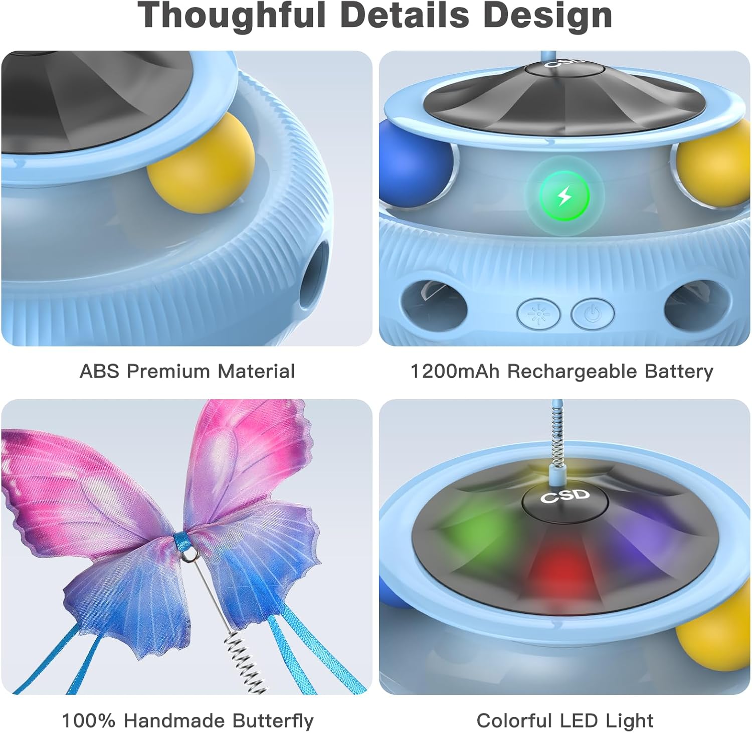 - Multi functional interactive cat toy:The cat stimulation toys for indoor cats,it combines with cat fluttering butterfly toy,track ball toy and random shooting feather toy,which provides cat's hunting instincts: chasing, pouncing,ambushing.And multiple play modes keep the kittens entertaining