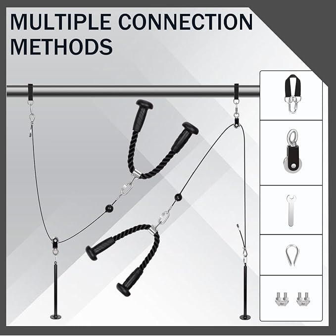 - asy to Assemble & Use:This pulley system is quick to install and highly versatile. It connects easily to power racks, pull-up bars, or beams, making it adaptable to various setups, ensuring flexibility and convenience in your workout space.