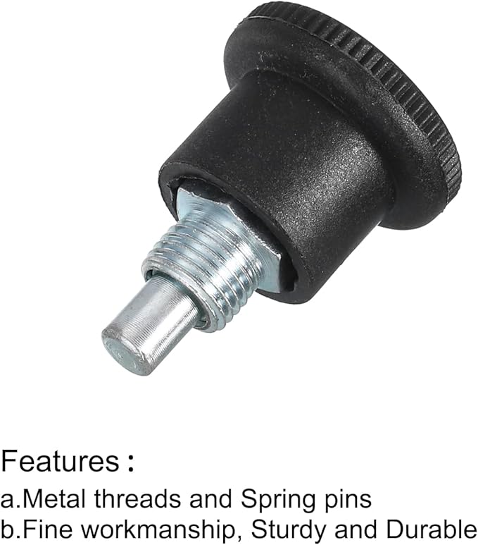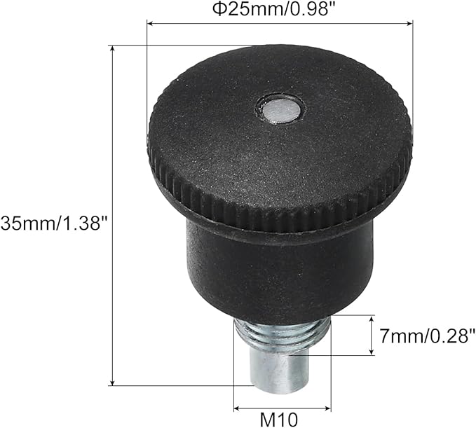 - Material: Steel and ABS; Color: Black; Screw Diameter: M10 x 10; Screw Length: 7 mm / 0.28; Total Size: 35 x 25 mm / 1.38“x 0.98”(L*W); Package Content: 1pcs x Pull Pin Spring Knob Replacement Parts