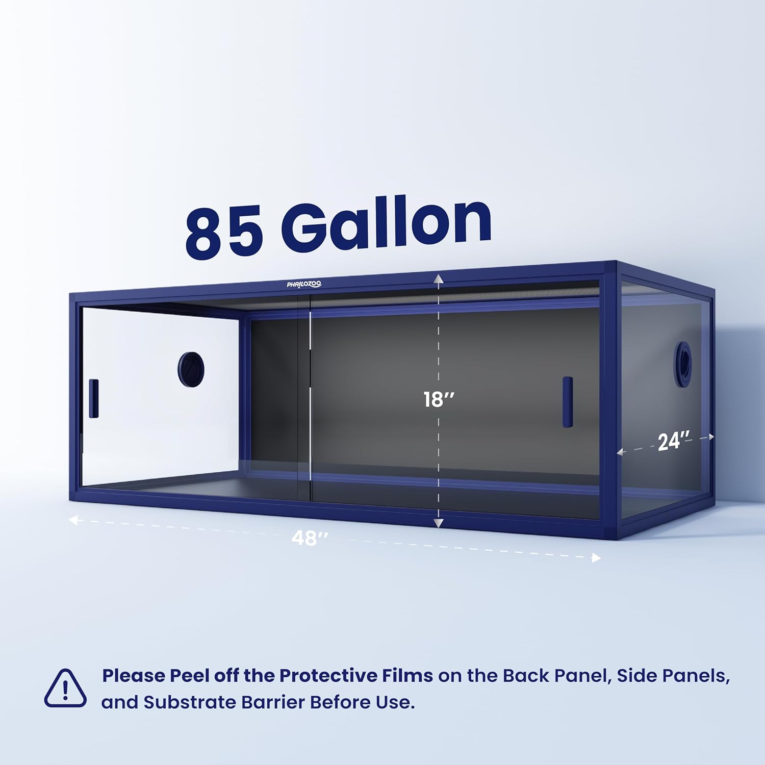 - 【Size Matters】Our stylish and functional 85 gallon reptile tank measures 48''Lx24''Wx18''H. Perfect for bioactive setups, such as snake enclosure, bearded dragon tank, and lizard tank. Spacious playground for your beloved reptiles to explore and thrive while being safe.