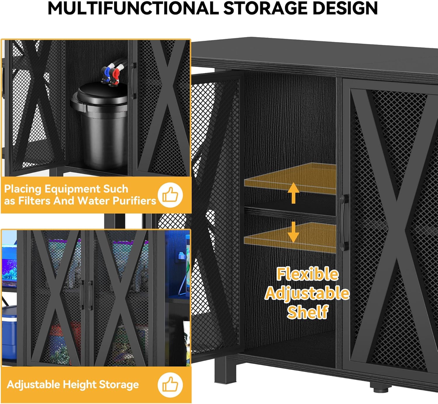 - Gorgeous LED Lights: Our aquarium stand is equipped with LED lights featuring RGB capabilities, both on the cabinet and above the smaller fish tank stand. This allows you to adjust the lighting of your aquarium according to your mood, creating any desired illumination