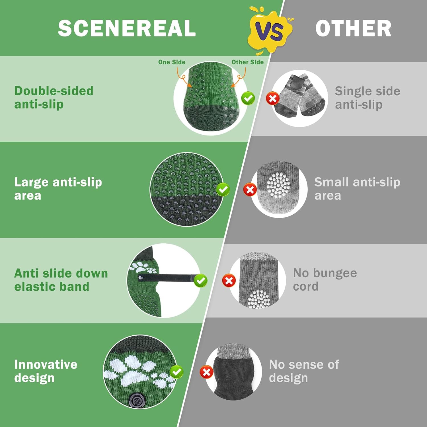 SCENEREAL Anti Slip Dog Sock to Prevent Licking Paws for Hardwood Floors, Boots & Paw Protector Shoes for Hot/Cold Pavement with Grippers, Double Sides Grips for Small Medium Large Senior Dogs, L