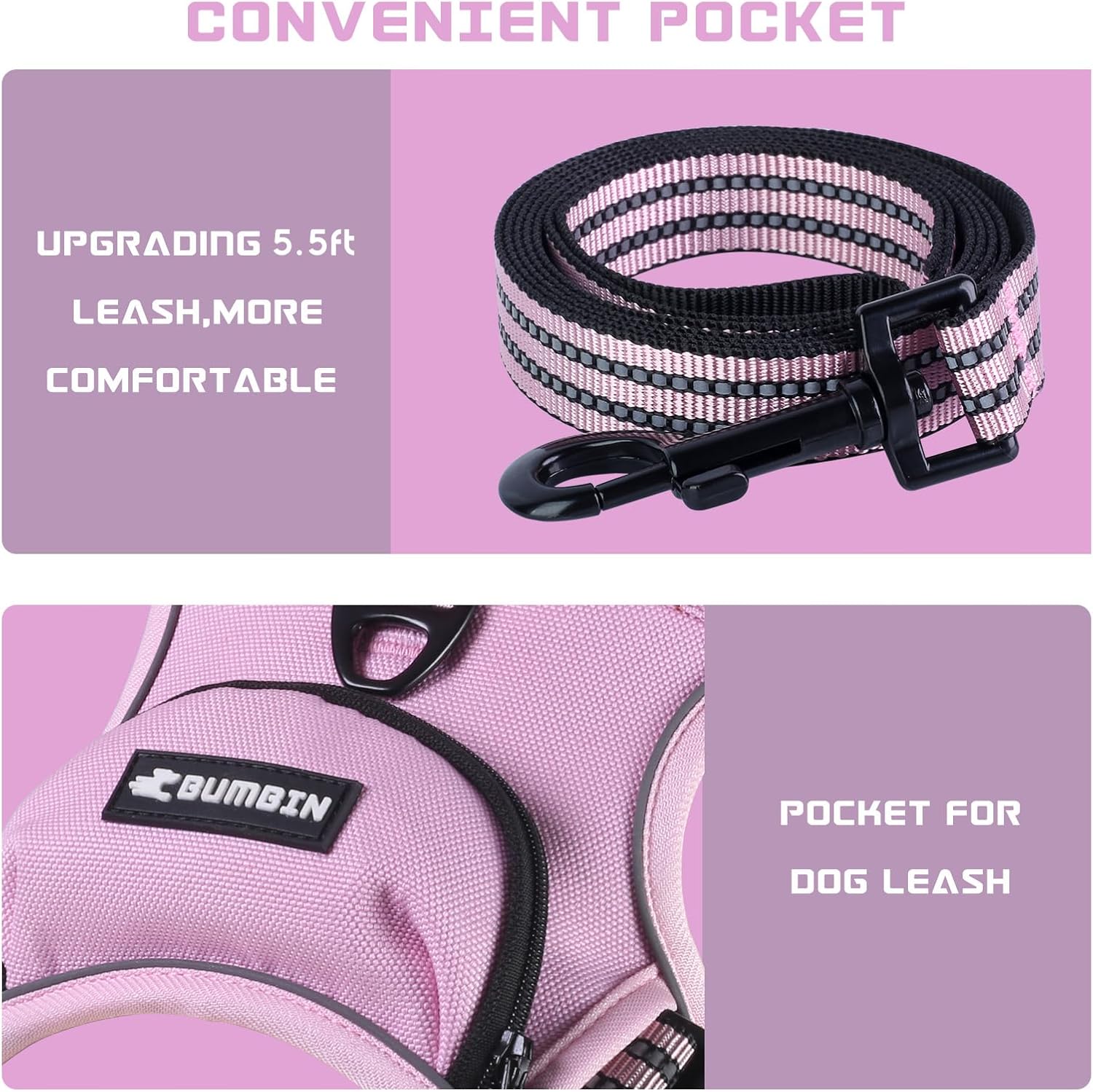 BUMBIN Dog Harness for Large Dogs, No Pull Adjustable No Choke Pet Vest with Dog Leash Fit Smart Reflective Pet Walking Harness for Training Easy Control Soft Handle Pink S