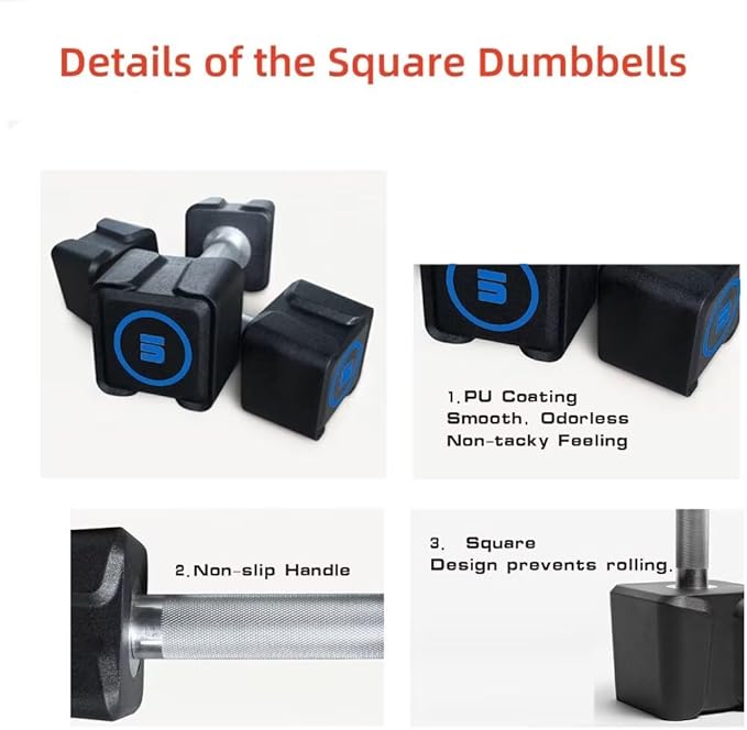 - SQUARE SHAPE:When you put the dumbbell down to stop exercising, the square dumbbell head is not easy to roll or slip off.