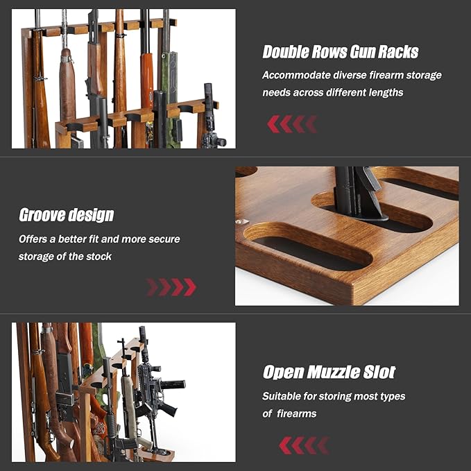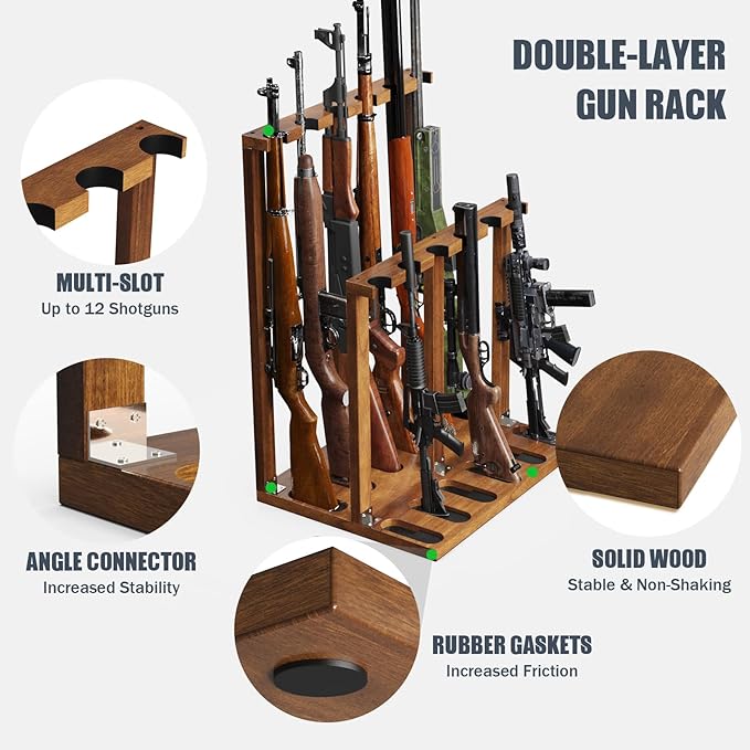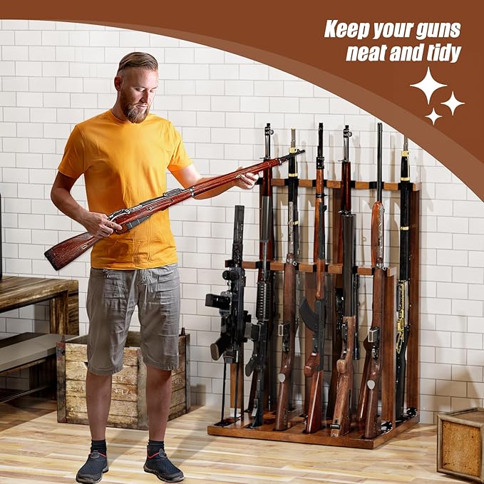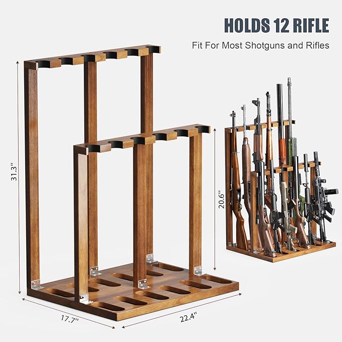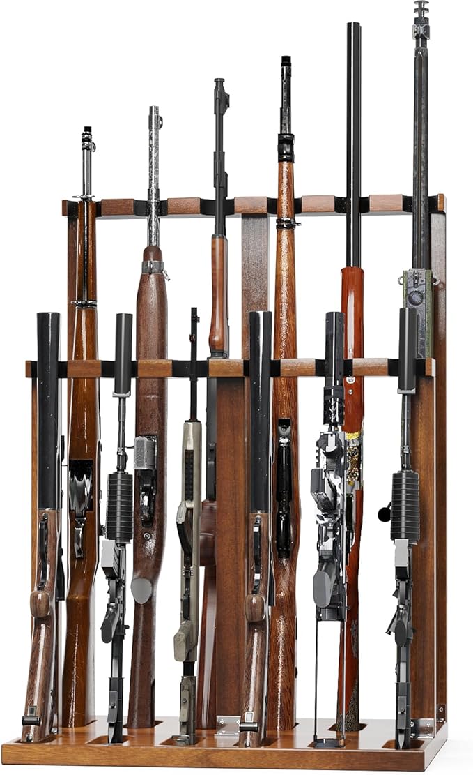 Indoor Gun Racks, Wooden Free Standing Heavy Duty Shotgun Display Rack, Rifle Stand Organizer, 12 Rifles Storage Holder Wood Gun Rack (Walnut)