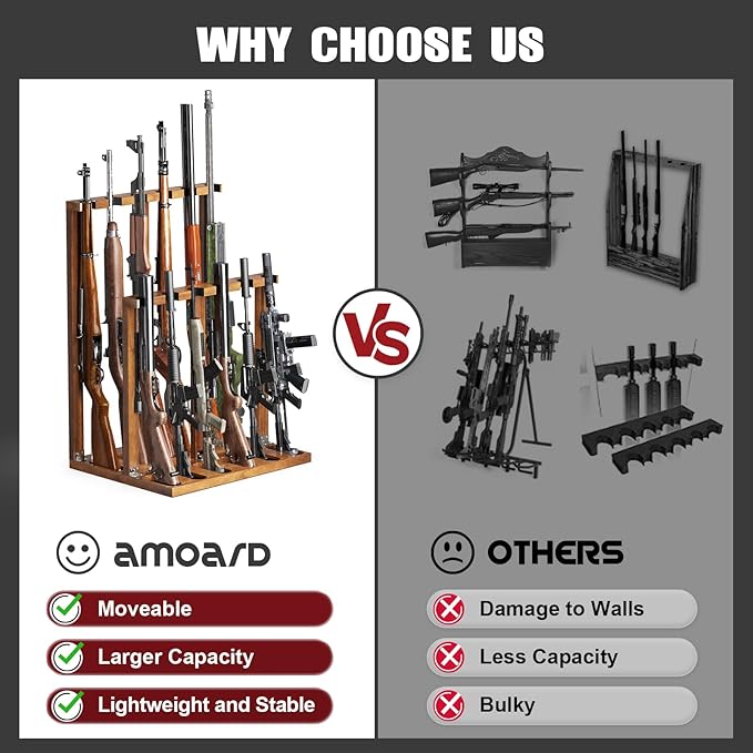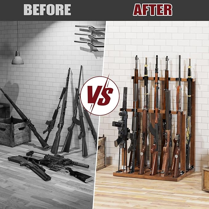- Large Capacity: The design of this gun rack accommodates the practical needs of shooting enthusiasts. With its extra-large capacity, it can easily accommodate up to 12 guns. Whether you're a seasoned shooting lover or enjoy the occasional shooting session, this rack will meet your needs. Its design allows you to neatly store all your guns in one place, making it convenient for access while ensuring their safety.