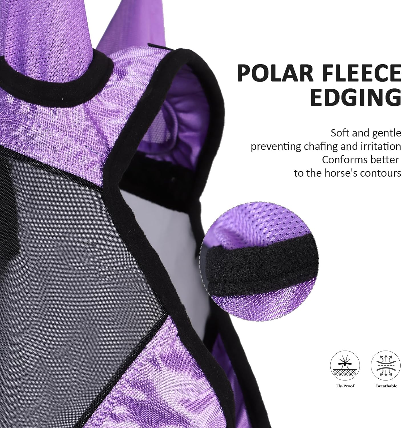 Harrison Howard Pro Luminous Horse Half Face Fly Mask Large Eye Space with Ears UV Protection for Horse Gentle Lavendar M
