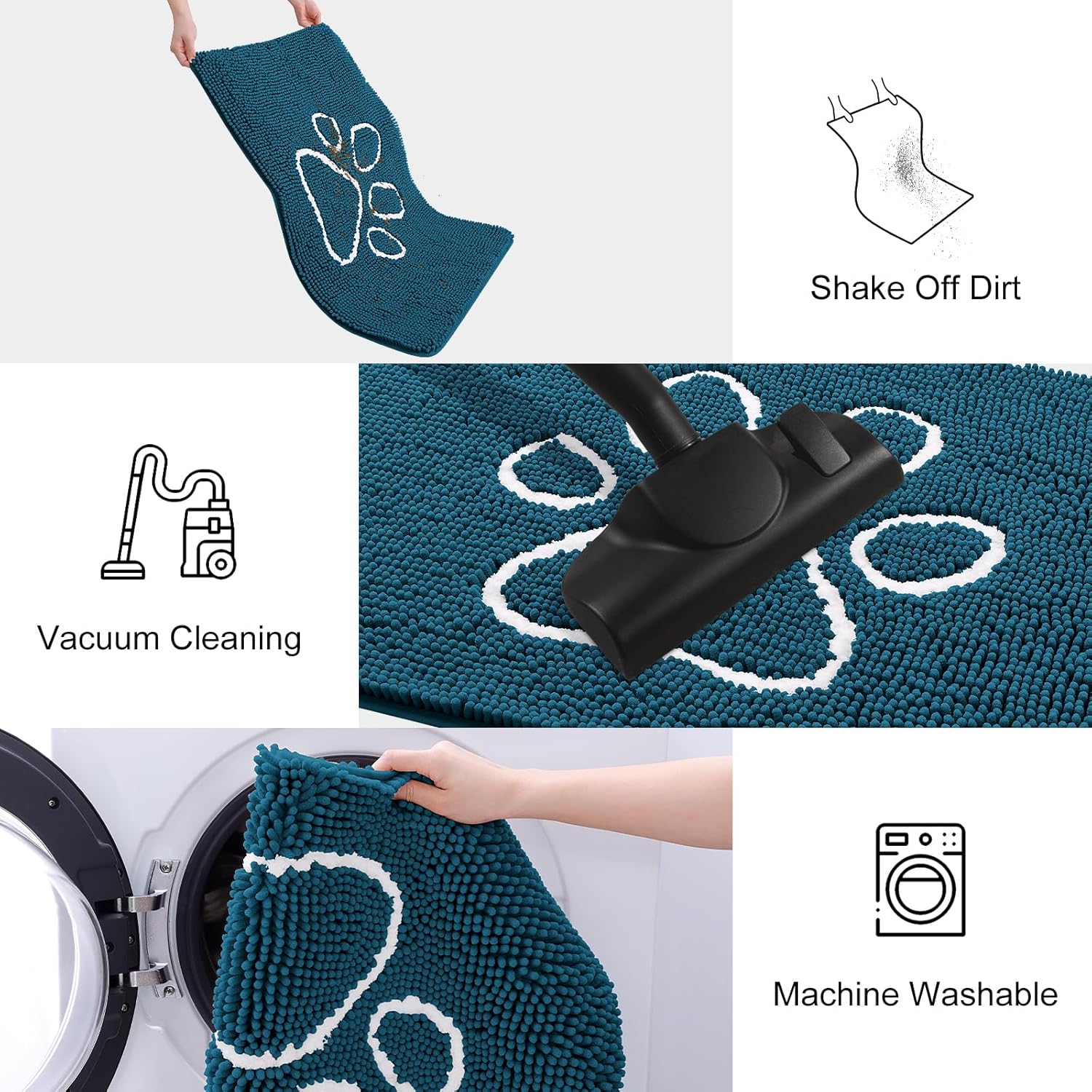 Smiry Dog Door Mat for Muddy Paws, Absorbent Dirt Trapper Non Slip Quick Dry Washable Chenille Mat for Mud Dogs, Entry Rug for Indoor and Outdoor (70x24 Inches, Atlantic Blue)