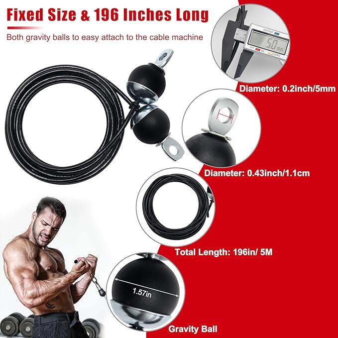 - 【Fixed Cable】: Fitness pulley cable has 2 gravity ball in 1.57inches in diameter, prevent the rope from shaking to ensure the smoothly running while exercise. Fixed ends no need extra tool, suitable for home gym cable replacement