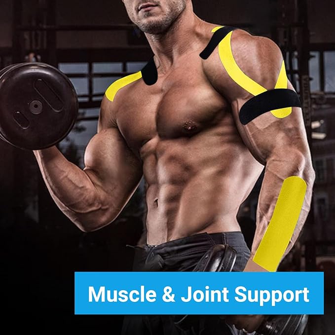 - Long-Lasting Support: Elastane and strong adhesive stays on 3-4 days, kinesiology athletic tape resistant to sweat and water, this waterproof Kinesiology tape stays put, after you swimming and bathing.