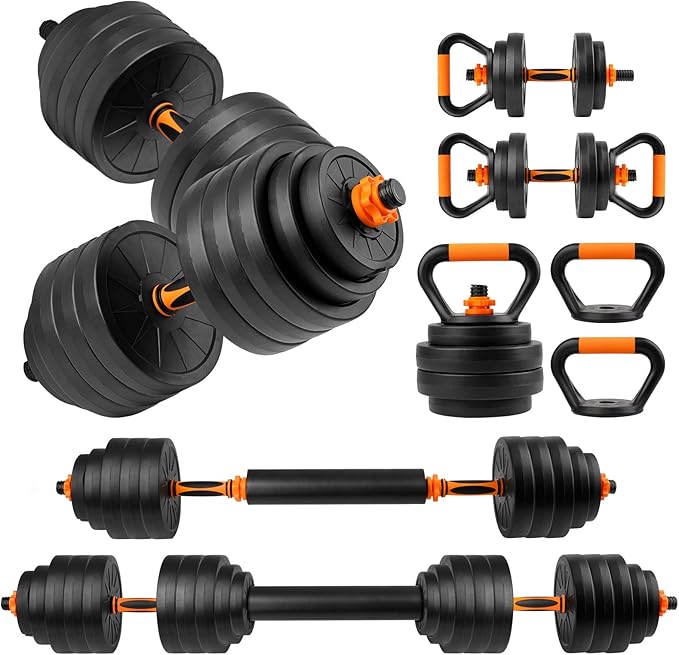 - 【4 in 1 MULTIFUNCTIONAL DUMBBELL SET】With The Fragraim weights dumbbells set, you can get a pair of dumbbells also barbells, kettlebells and push-up stands, which help you do many exercises including bench presses, squats. A complete set of dumbbells perfect for presenting the home gym workout