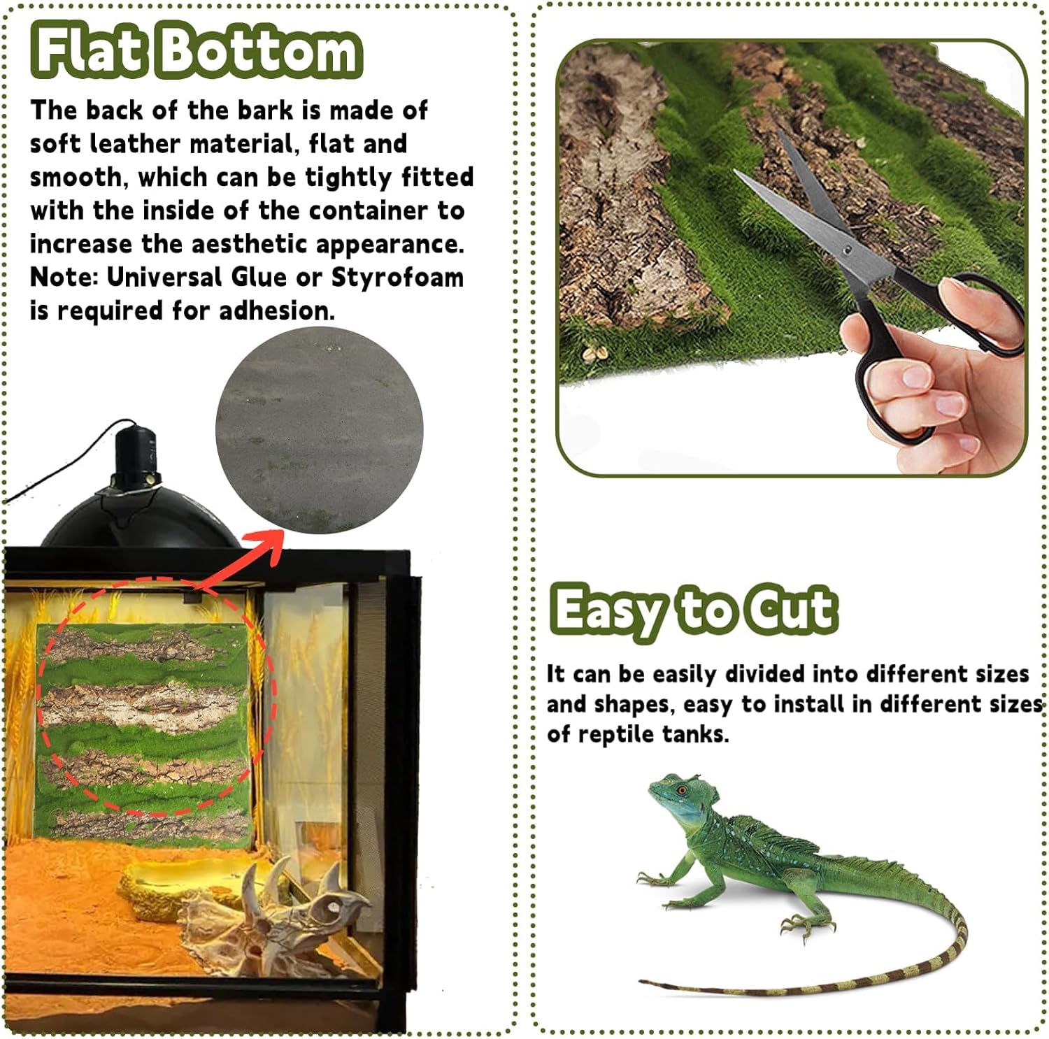 - 【Easy to Cut】: Our cork bark for terrariums is flexible and elastic, allowing you to tear it by hand or cut it with scissors to achieve the desired size and shape. Tailor it to your reptile's needs and create a personalized climbing space.