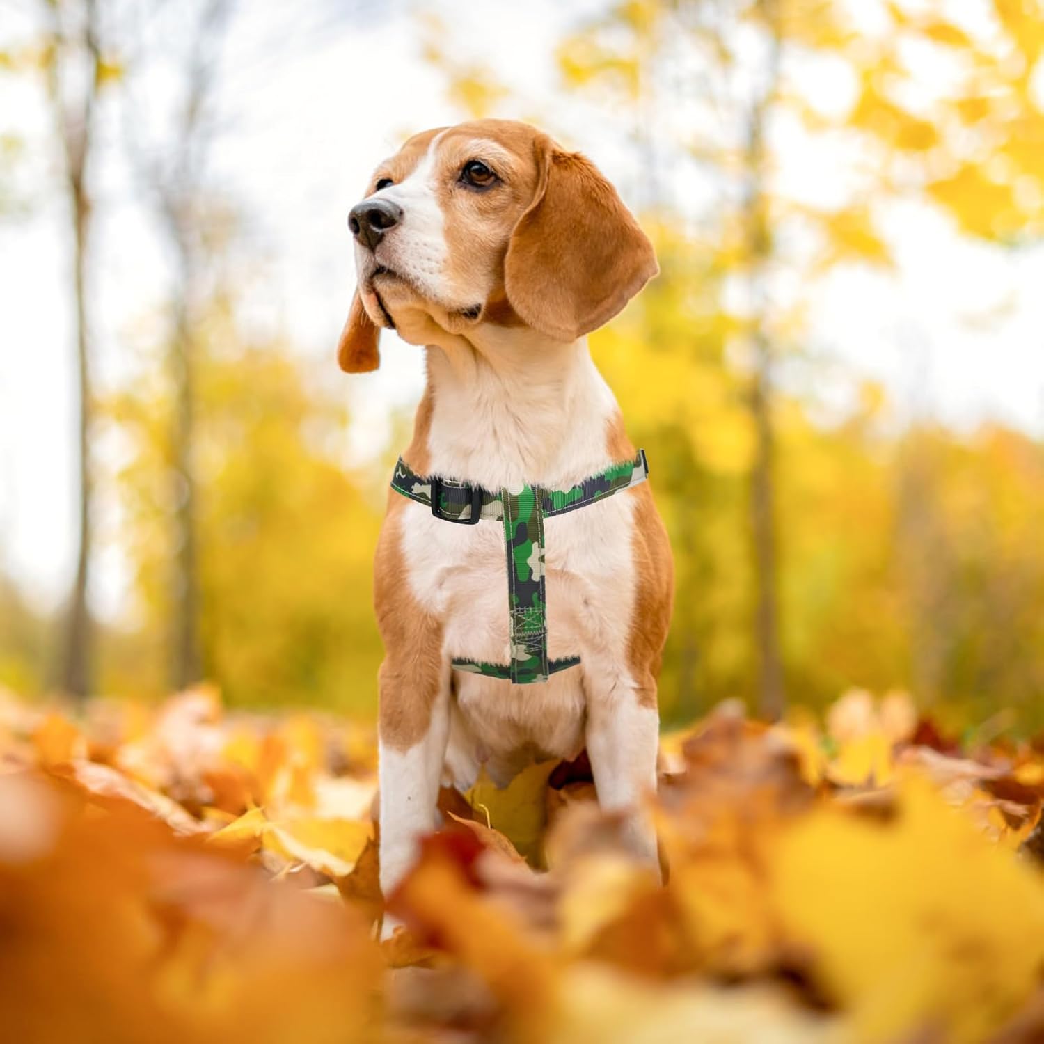 PUPTECK No Pull Dog Harness Soft Adjustable Basic Nylon Step in Puppy Vest Outdoor Walking with ID Tag, Camouflage, M