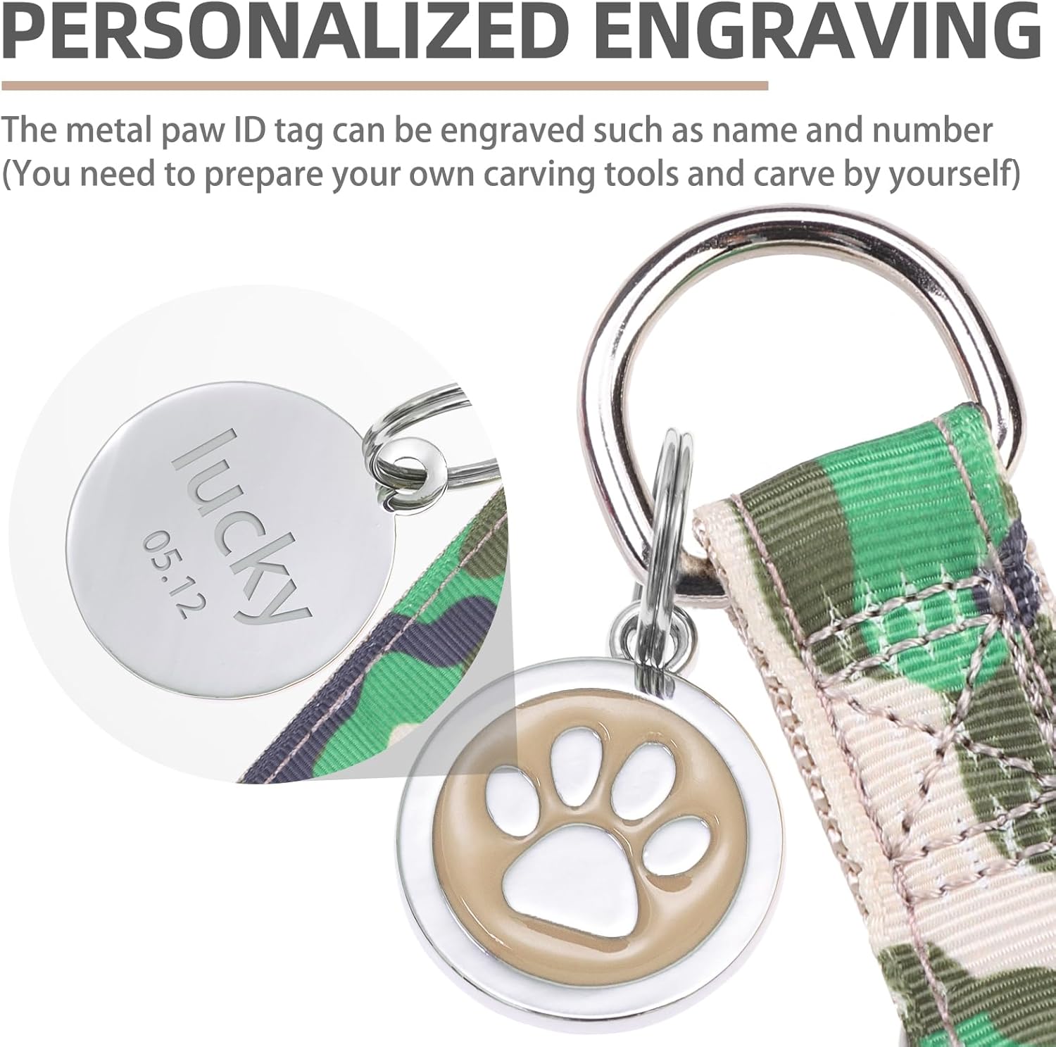 - [Cute ID Tag for DIY] - Each harness is equipped with a metal ID tag, and the front is a cute paw pattern, while on the back, you can engrave whatever you want, such as the dog's name and so on. It does not corrode as easily as wooden labels and is durable. You can also remove it when washing the harness.