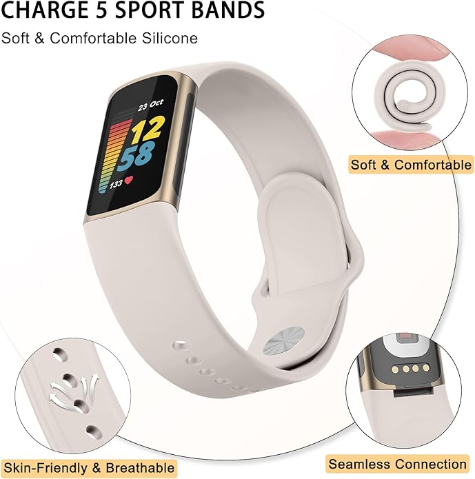 - 【Comfortable and Durable】This Fitbit Charge 5 silicone watch band is made of high-quality silicone material, bringing ultimate comfort and durability to prevent skin irritation. It has excellent sweat-proof, waterproof and anti-wear properties, soft, lightweight, durable and very comfortable to wear.