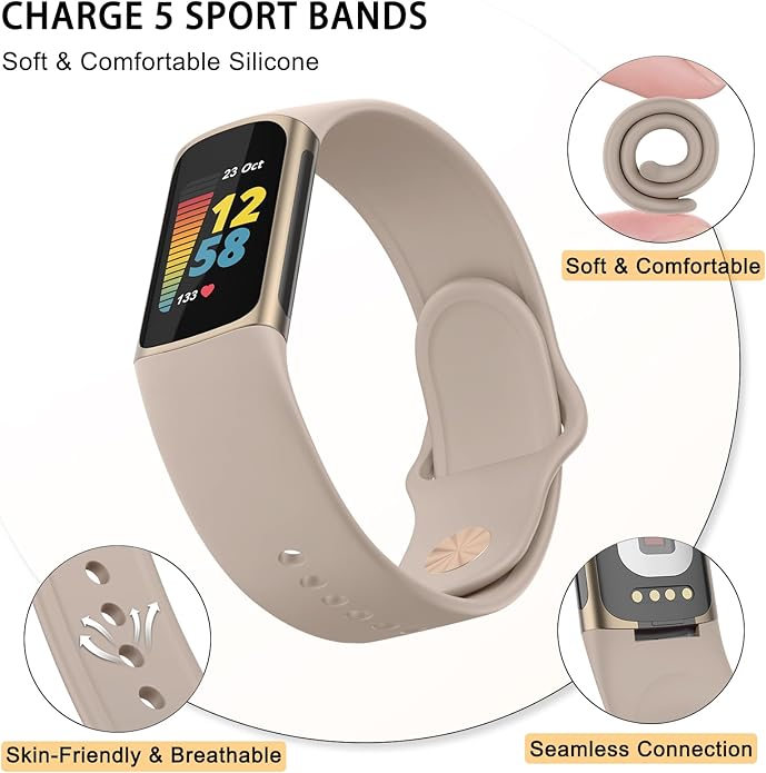 • 【Comfortable and Durable】This Fitbit Charge 5 silicone watch band is made of high-quality silicone material, bringing ultimate comfort and durability to prevent skin irritation. It has excellent sweat-proof, waterproof and anti-wear properties, soft, lightweight, durable and very comfortable to wear.