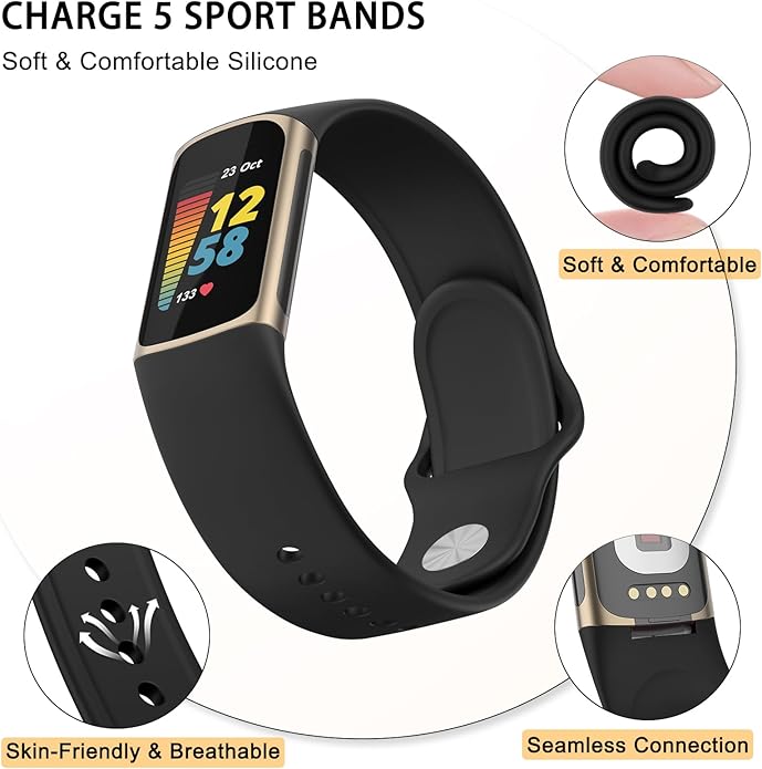 • 【Comfortable and Durable】This Fitbit Charge 5 silicone watch band is made of high-quality silicone material, bringing ultimate comfort and durability to prevent skin irritation. It has excellent sweat-proof, waterproof and anti-wear properties, soft, lightweight, durable and very comfortable to wear.