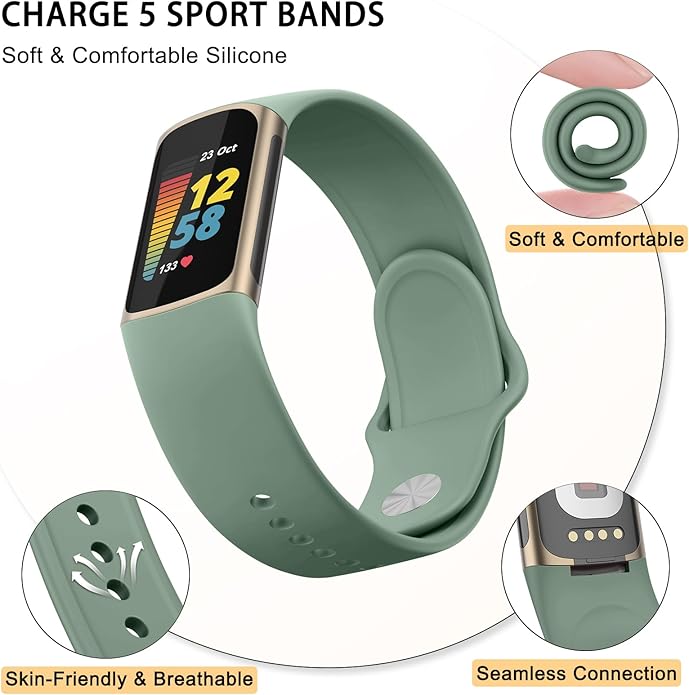 - 【Comfortable and Durable】This Fitbit Charge 5 silicone watch band is made of high-quality silicone material, bringing ultimate comfort and durability to prevent skin irritation. It has excellent sweat-proof, waterproof and anti-wear properties, soft, lightweight, durable and very comfortable to wear.