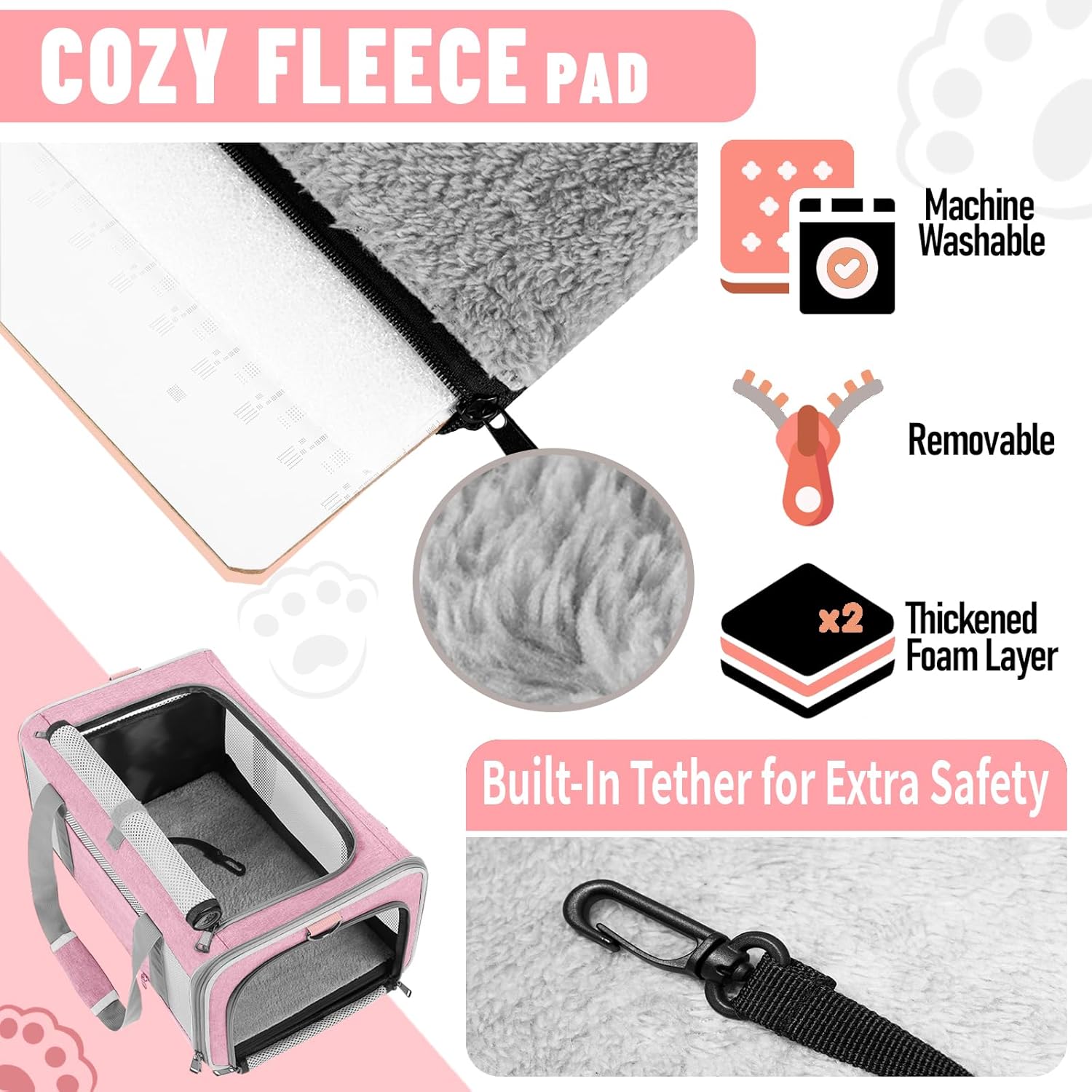 - Secured with auto-locking zippers, your pet can't escape easily by pushing against the zipper from the inside. An inner tether for extra safety. A reflective stripe on the side helps you feel at ease when you walking the dog at night