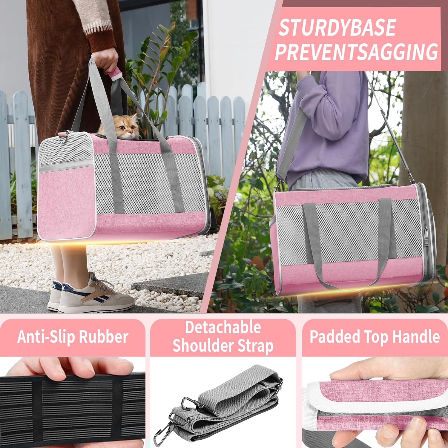 Cat Carrier 20lbs Top Open/Soft Sided Small Pet Dog Travel Carrying Crate/Collapsible Puppy Transport Carry Bag/Sturdy Pet Cages Chihuahuas Mini Dog 10lbs Pink