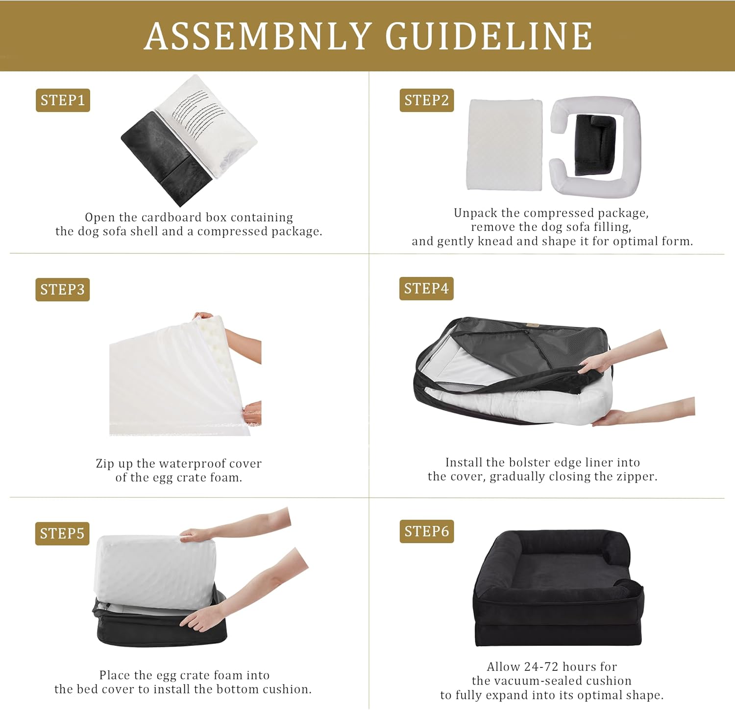 - Suitable Size: Suitable for All Breeds: 35"W x 25"L x 6.5"D; Sleeping surface: 26.5"W x 20"L (Up to 50lbs); When selecting the product size, please pay attention to the sleeping area. Please wait for 48 hours for full expansion to ensure optimal height and comfort before using.