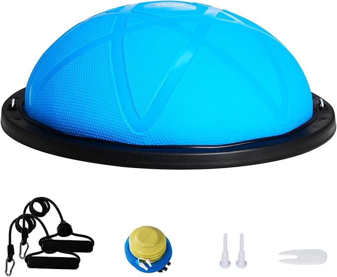 VEVOR Half Exercise Ball Trainer, 23/26 inch Balance Ball Trainer, 1500lbs Capacity Stability Ball, Yoga Ball with Resistance Bands & Foot Pump, Strength Fitness Ball for Home Gym Full Body Workout Black