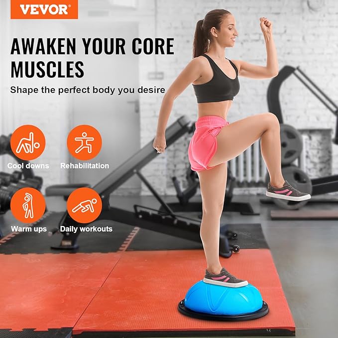 - Multi-functional Exercise: The half exercise ball trainer, unlike any other fitness equipment, offers various strength training methods targeting every muscle in your body, supporting multiple unique stretching poses, making it a perfect complement to your home gym and workout routine. With infinite exercise options, from stepping to plank, lunge to push-up, it provides endless possibilities for full-body workouts.