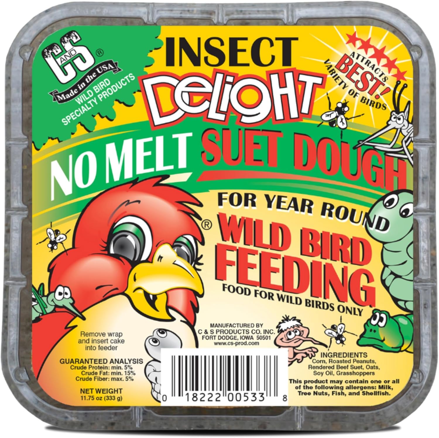 - CREATE A BACKYARD OASIS that birds will flock to all year round with C&S Insect Delight No Melt Suet Dough; This versatile feed can be used in summer, winter, spring and fall