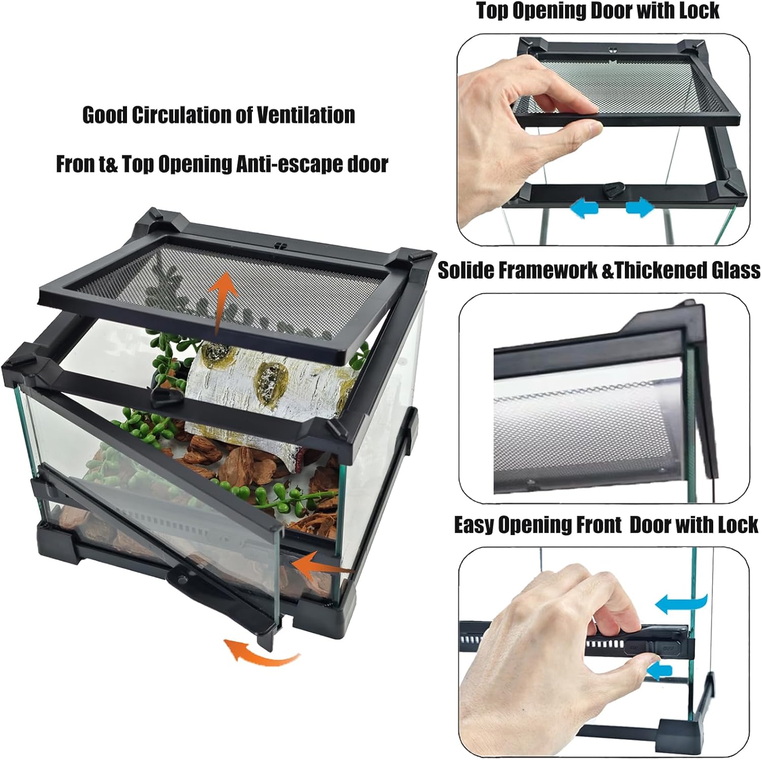 Woyrise Reptile Glass Terrarium Tank 8"x8"x5.7", Front & Top Opening Door Full View Visually Appealing Mini Reptiles or Amphibians Habitat, Stackable Enclousure for Small Reptiles