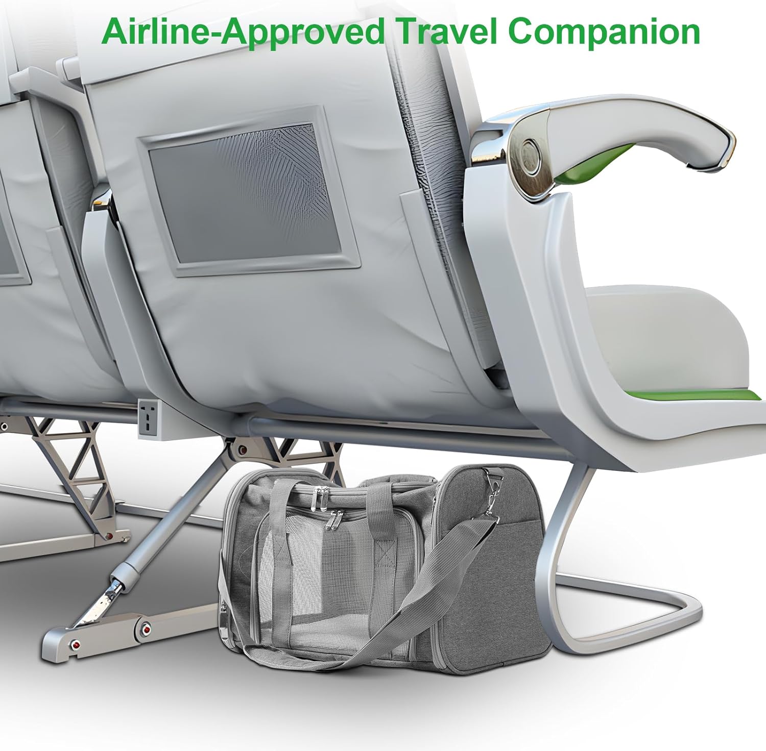 - Airline-Approved Travel Companion:Traveling with your furry friend has never been easier with our Soft-Sided Pet Carrier, designed to meet airline regulations for in-cabin travel. Please Note: While our pet carrier is designed to meet most airline requirements for in-cabin travel, we recommend checking with your airline for specific guidelines and regulations before your trip.