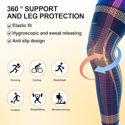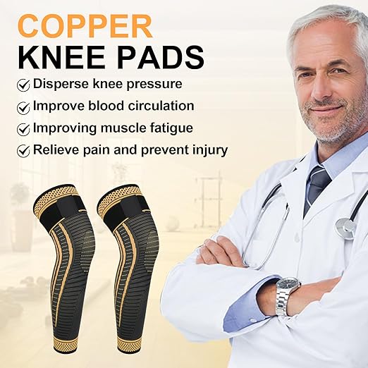 - Graded Pressure for Quick Recovery: Our long copper knee support can provide graded pressure, promote blood circulation, help promote injury recovery, and alleviate knee joint pain caused by arthritis, myositis, swelling, meniscus tears, strains, sprains, leg spasms, and varicose veins.