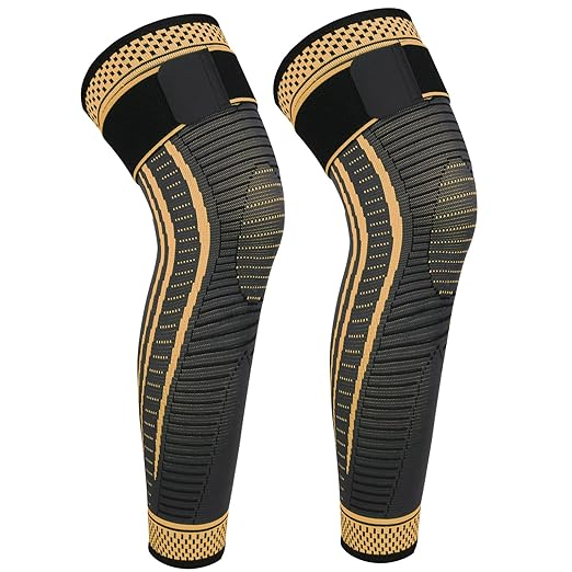 Long Copper Knee Braces for Women and Men Full Leg Compression Sleeves Anti Sliping Ventilation Long Knee Support with Wraps for ACJ, PCL, Meniscus Tear, Arthritis (Copper, X-Large)