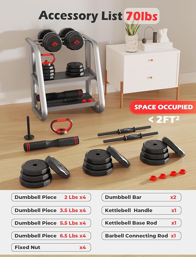 - 3-in-1 Multifunctional Dumbbell Set: The UKEEP Adjustable Dumbbell Set combines dumbbells, barbells, and kettlebells into one versatile package. With adjustable weights ranging from 55lbs, 70lbs, to 90lbs, it's perfect for various fitness exercises, including bench presses and squats. Ideal for both home gyms and professional use.