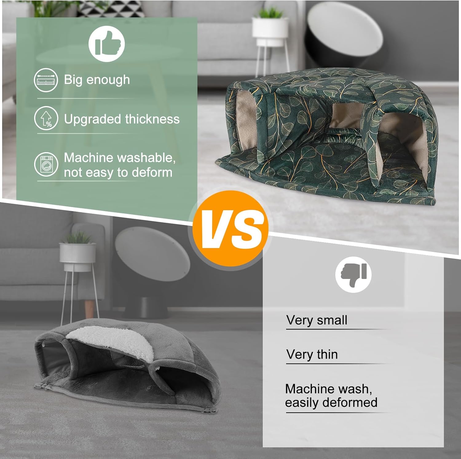 - Machine Washable: The guinea pig hideout is made of short plush and high-density elastic sponge; Not only is it very soft to the touch, but also more comfortable and warm, the fabric is thick enough to hold its shape and stay upright after many washes