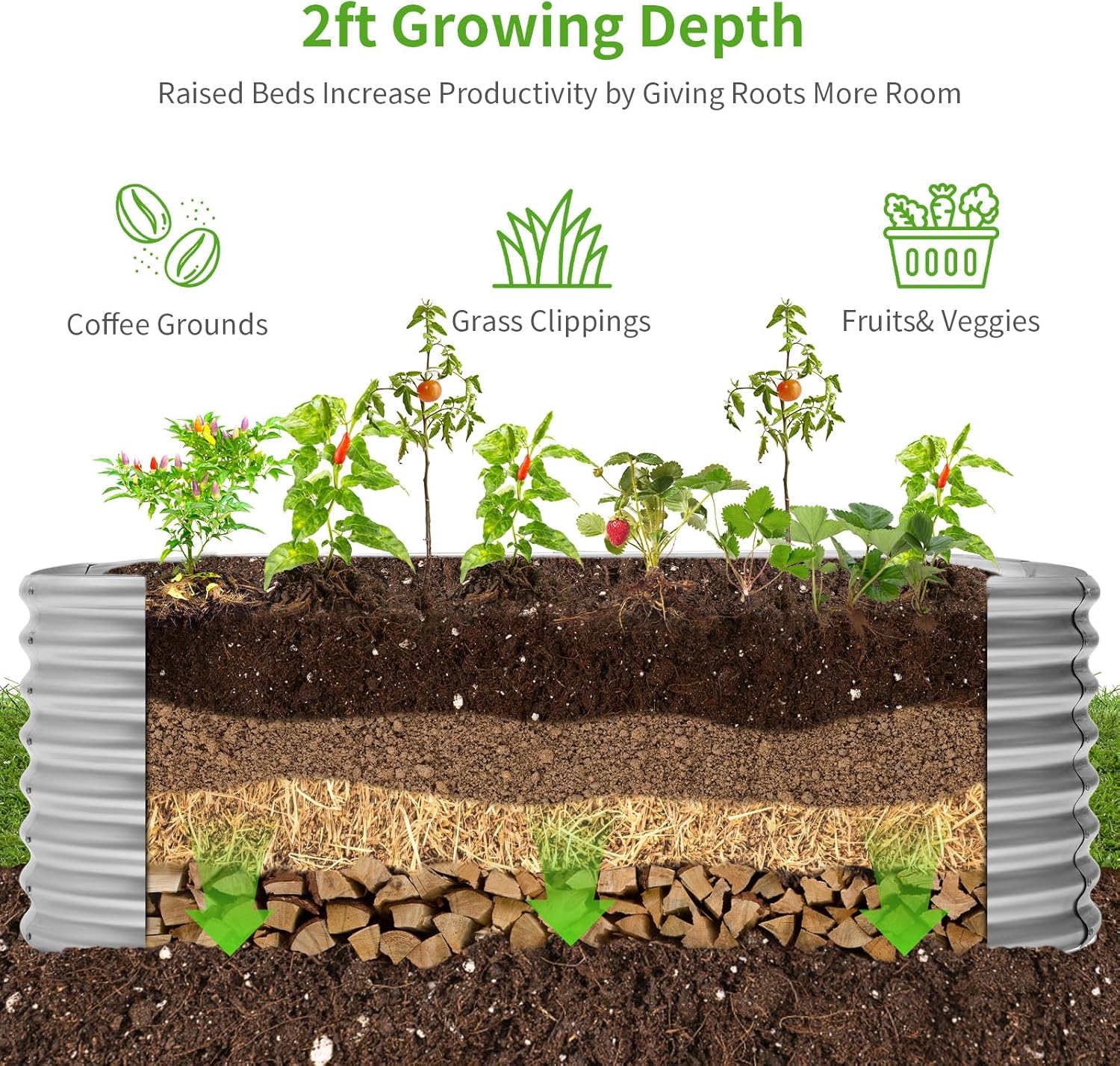 Land Guard Galvanized Raised Garden Bed, 8x4x2ft Planter Boxes Outdoor, Oval Larger Metal Planter Boxes for Vegetables, Fruits, Flowers (Silver)